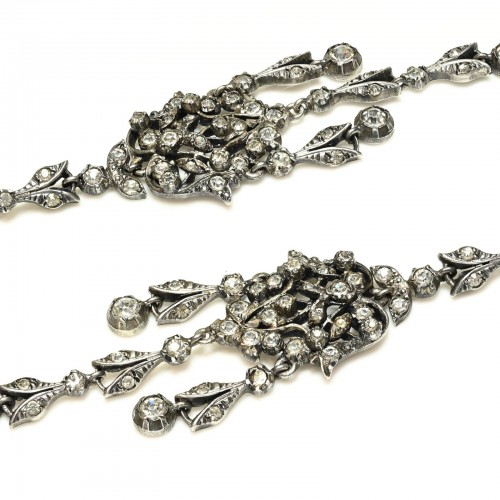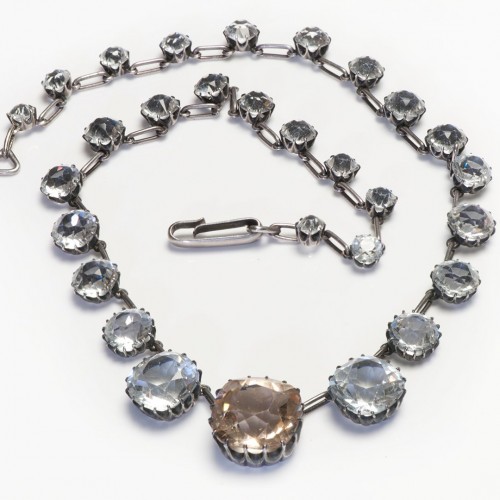 Antique 1900 Sterling Silver White Yellow Paste Rivière Necklace