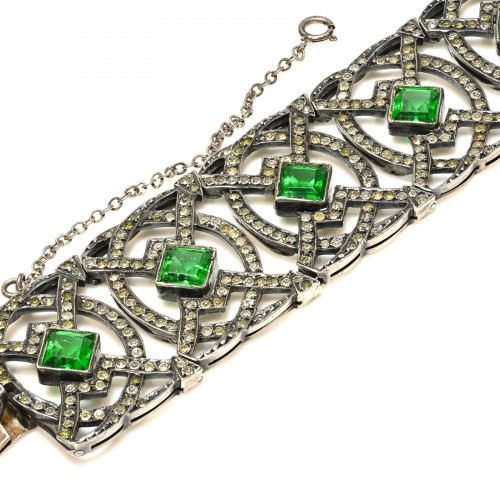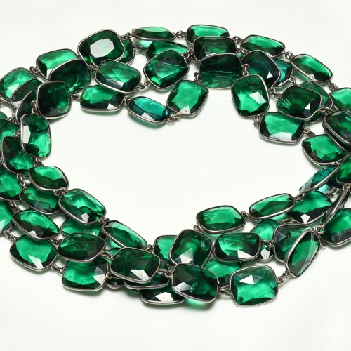 Antique 1900’s Sterling Silver Green Paste Chiclet Sautoir Necklace