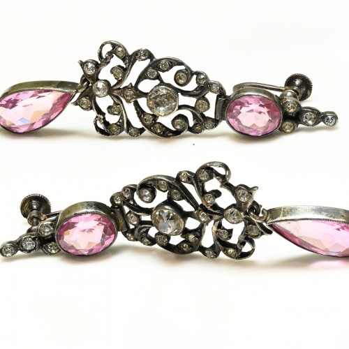 Antique 1900 Belle Époque Sterling Silver Paste Flower Bow Earrings