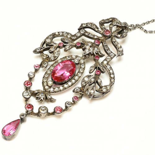 Antique 1900’s Belle Epoque Bow Sterling Pink Paste Pendant Necklace