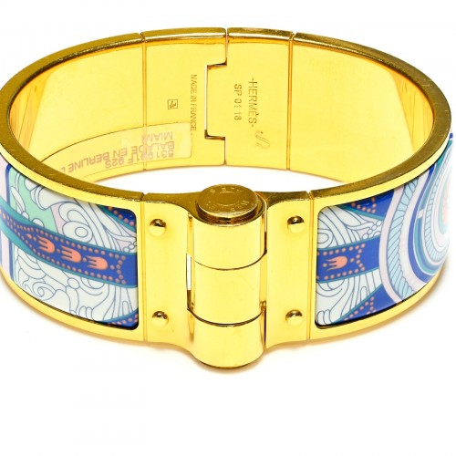 Hermes Paris Extra Wide Purple Green Blue Equestrian Horse Bangle Bracelet