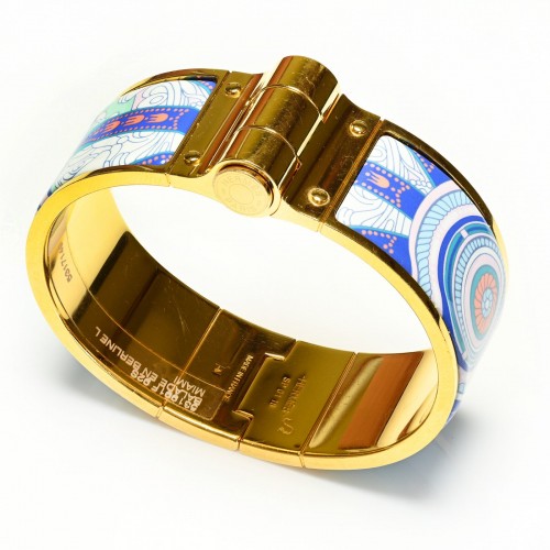 Hermes Paris Extra Wide Purple Green Blue Equestrian Horse Bangle Bracelet