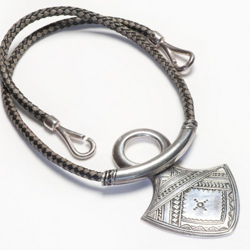 Hermes Paris 1990’s Touareg Sterling Silver Leather Pendant Necklace