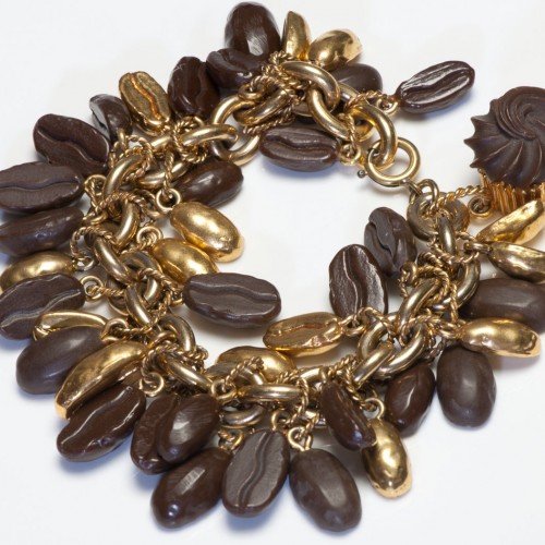 Isabel Canovas Paris 1980’s Gold Plated Coffe Bean Cupcake Charm Bracelet