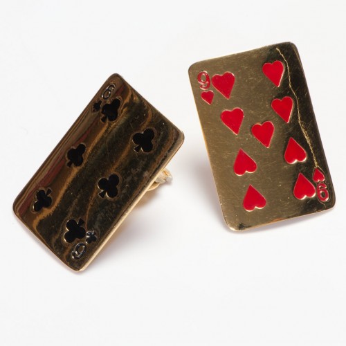 Isabel Canovas Paris Gold Plated Black Red Enamel Playing Cards Earrings