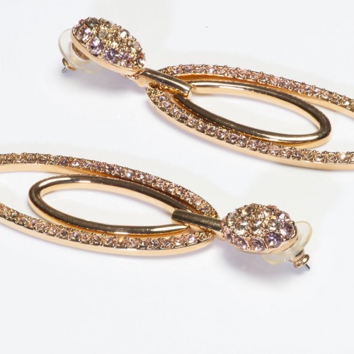 Judith Leiber Long Gold Plated Ombre Brown Pink Crystal Hoop Earrings