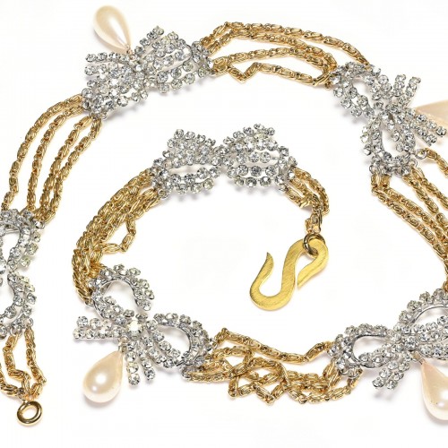 Vintage 1950’s Christian Dior Couture Crystal Bow Pearl Collar Necklace