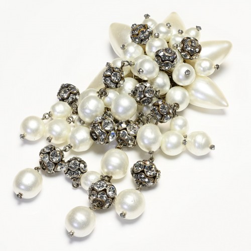 Vintage 1950’s Christian Dior Paris Couture Crystal Pearl Flower Tassel Brooch