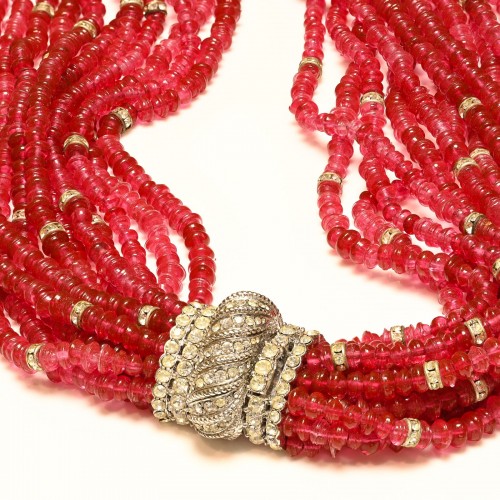 Vintage Countess Cissy Zoltowska CIS Green Pink Orange Crystal Necklace