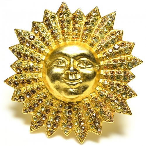 Vintage Karl Lagerfeld Paris Gold Plated Crystal Sun Brooch Pendant