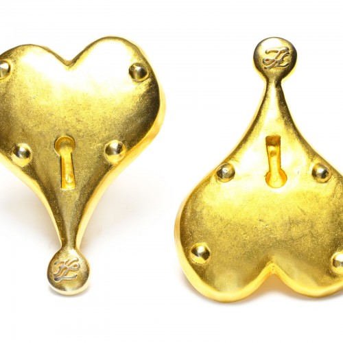 Vintage Karl Lagerfeld Paris Gold Plated Heart Padlock Earrings