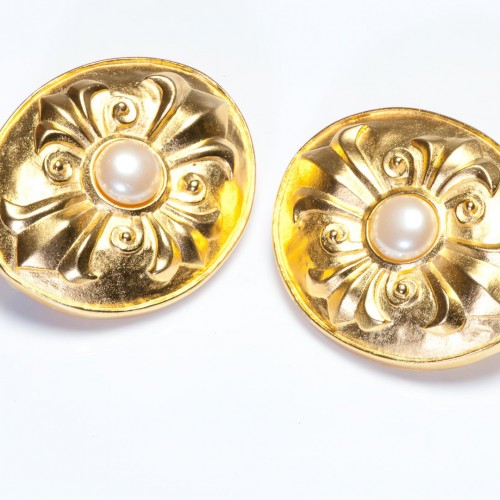 Vintage Karl Lagerfeld Paris Gold Plated Maltese Cross Pearl Earrings
