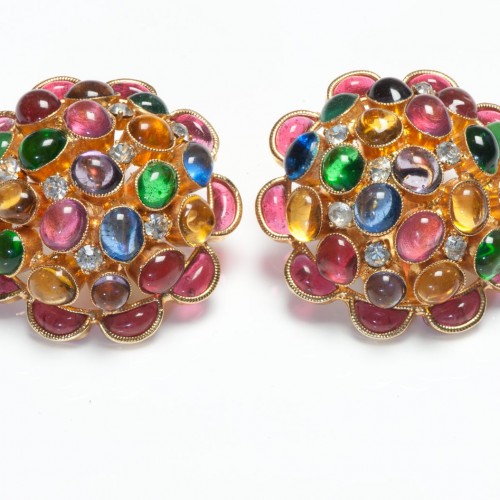 Chanel Paris 1993 Maison Gripoix Red Green Blue Glass Door Knocker Earrings