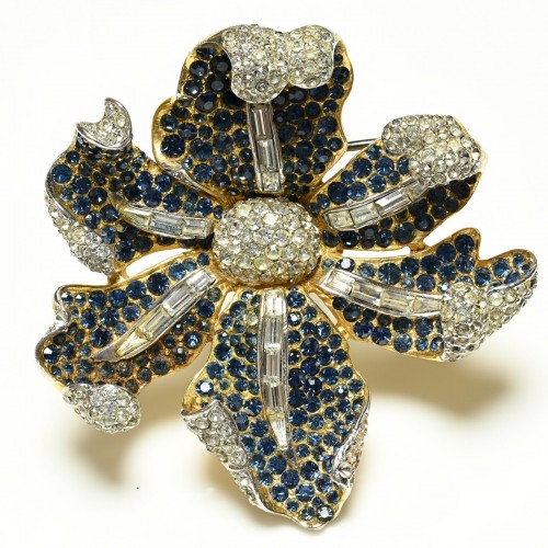 Vintage Miriam Haskell Blue Crystal Glass Double Strand Necklace