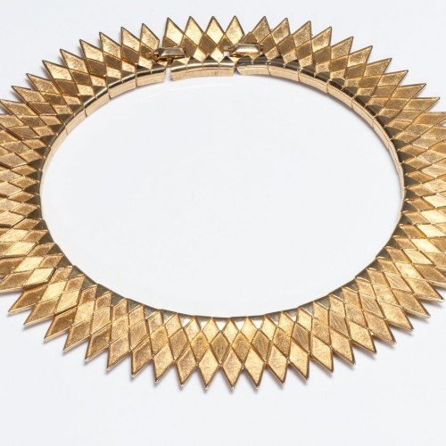 Vintage Marcel Boucher Gold Plated Egyptian Style Textured Collar Necklace