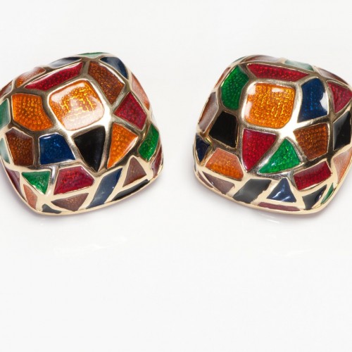 Vintage Maresca Gold Plated Orange Green Red Blue Enamel Earrings