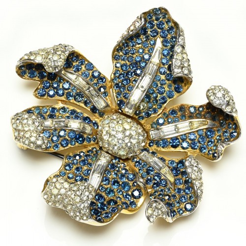 Vintage Miriam Haskell Blue Crystal Glass Double Strand Necklace