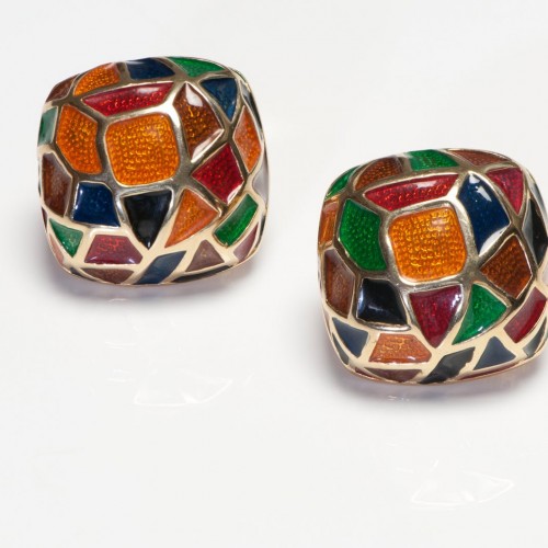 Vintage Maresca Gold Plated Orange Green Red Blue Enamel Earrings