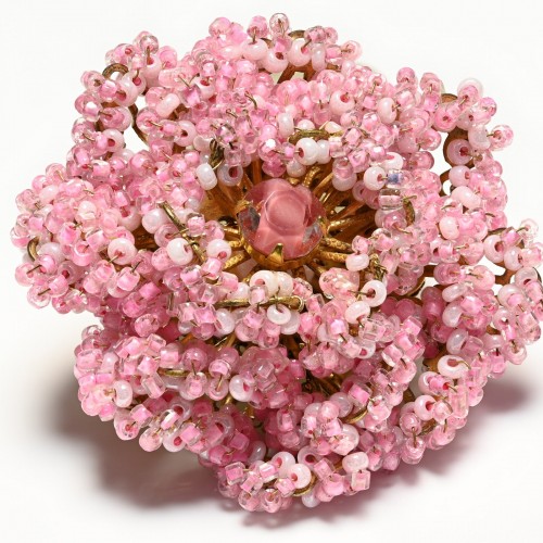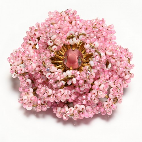 Vintage Miriam Haskell Pink Glass Beads Turtle Bird Heart Charm Stickpin Brooch