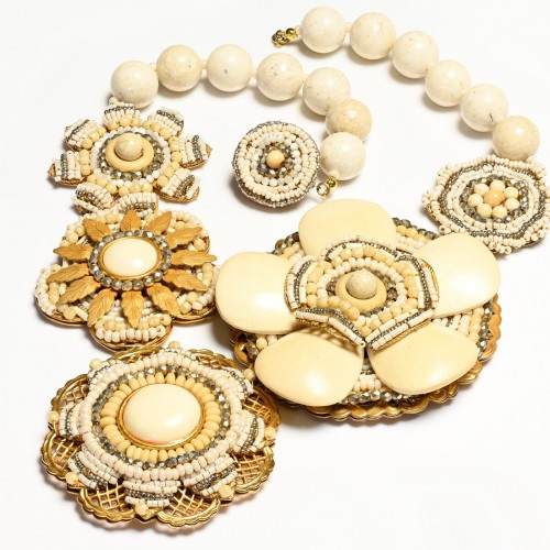 Vintage Miriam Haskell White Resin Beads Large Flower Necklace