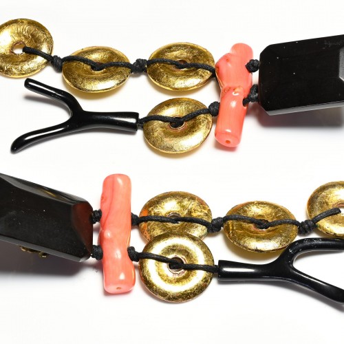 Vintage Monies Gerda Lynggaard Long Carved Horn Tribal Style Earrings