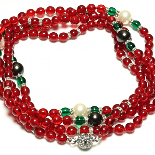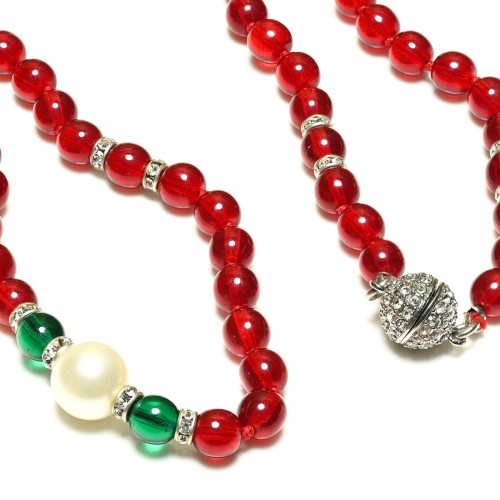 Vintage Mughal Style Red Green Glass Beads Pearl Sautoir Necklace