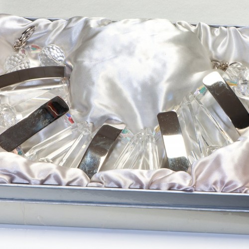 Vintage Paco Rabanne Paris Wide Silver Tone Metal Glass Crystal Choker Necklace