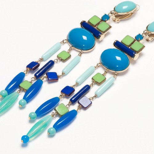 Vintage Philippe Ferrandis Paris Shoulder Duster Blue Green Tassel Earrings
