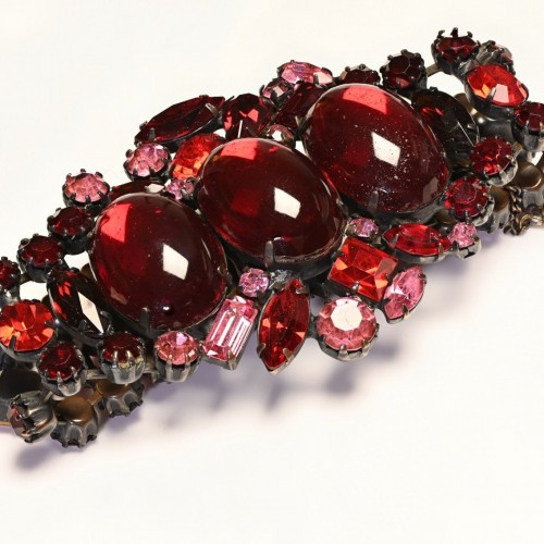 Vintage Original By Robert Wide Red Pink Cabochon Crystal Bracelet