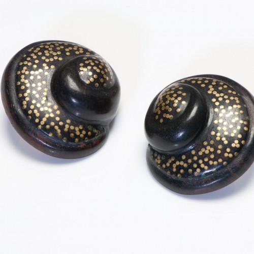 Vintage Patricia Von Musulin Sterling 14K Gold Inlaid Dot Wood Shell Earrings