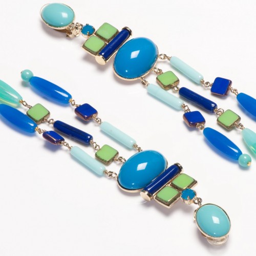Vintage Philippe Ferrandis Paris Shoulder Duster Blue Green Tassel Earrings