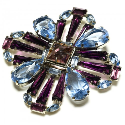 Vintage Schreiner NY Blue Purple Keystone Crystal Cross Flower Brooch