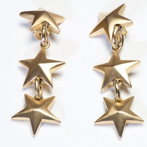 Vintage Roxanne Assoulin Long Gold Plated Star Drop Earrings