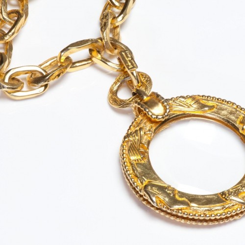 Vintage Salvatore Ferragamo Gold Plated Shoe Motif Magnifying Glass Necklace