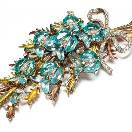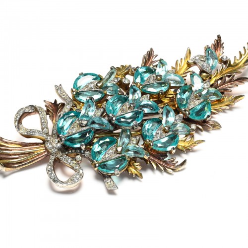 Vintage Trifari 1940’s Alfred Philippe Blue Crystal Demilune Flower Brooch