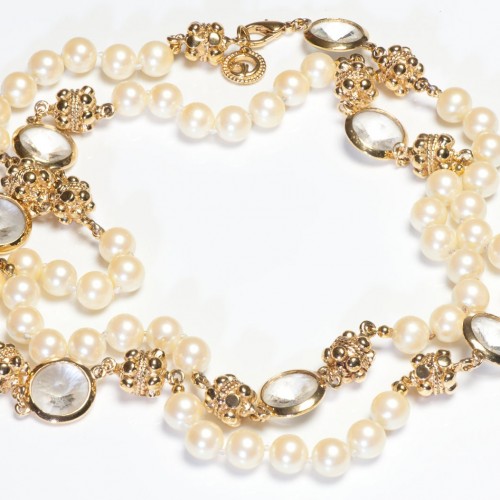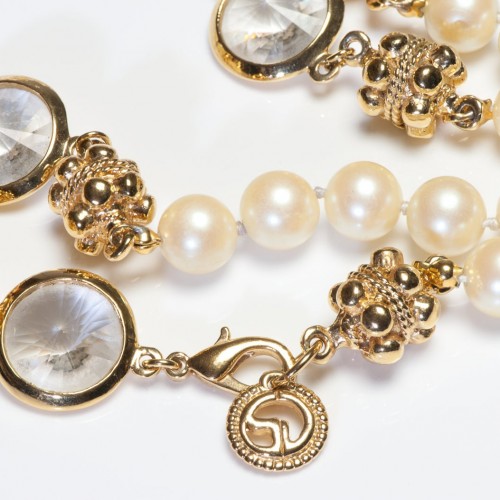 Vintage St. John Gold Plated Crystal Faux Pearl Sautoir Necklace