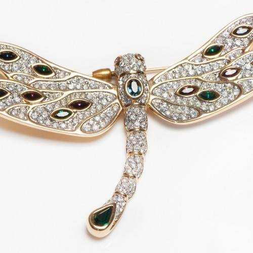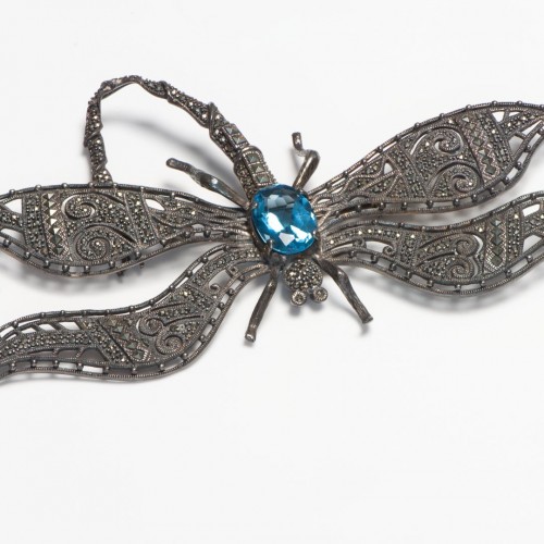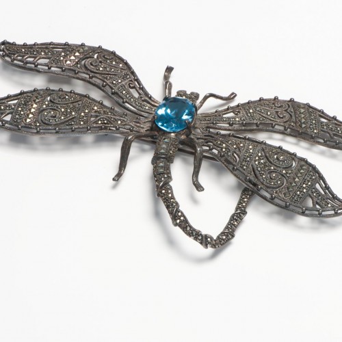 Vintage Sterling Silver Marcasite Blue Crystal Large Dragonfly Brooch
