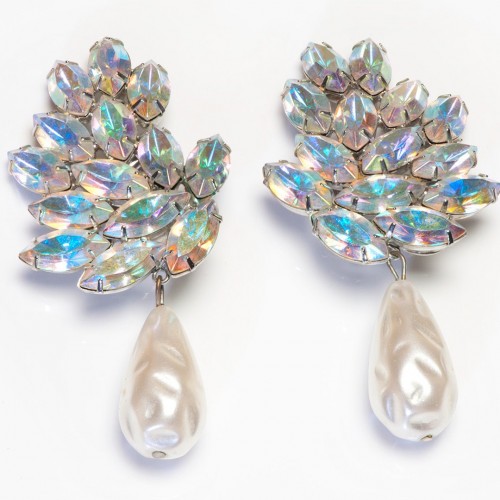 Vintage Thelma Deutsch Long Aurora Borealis Crystal Pearl Earrings