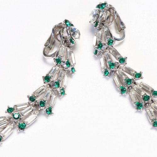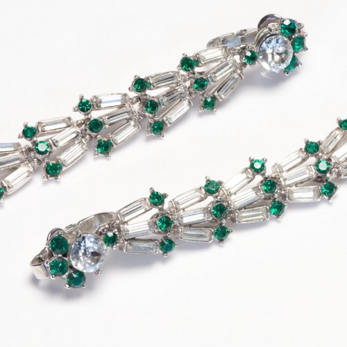Vintage Swarovski Long Gold Plated Green Crystal Art Deco Style Earrings