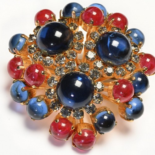 Vintage West Germany Blue Red Cabochon Glass Crystal Sputnik Starburst Brooch