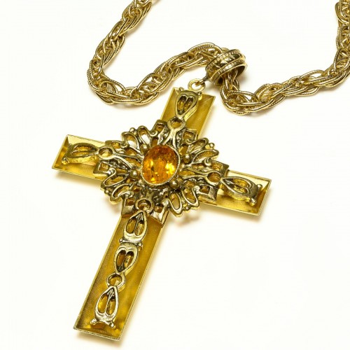 Vintage Whiting & Davis Brown Crystal Cross Pendant Necklace