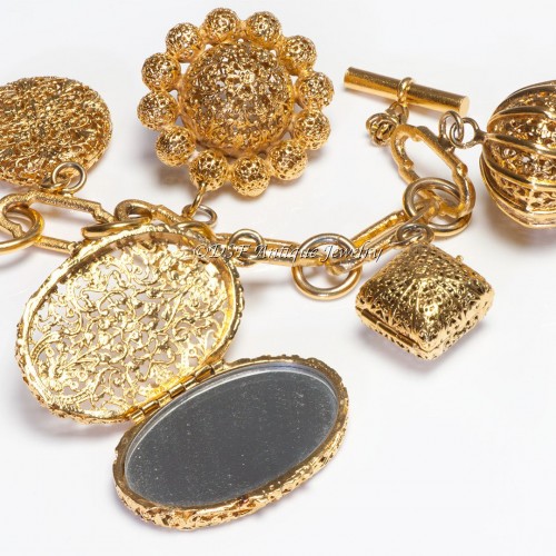 Chanel Paris Fall 1989 Gold Plated Filigree Mirror Charm Chain Link Bracelet