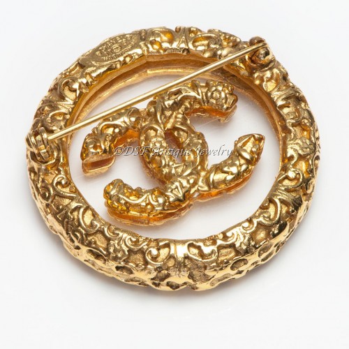 Chanel Paris Fall 1993 Lava Collection CC Clear Glass Round Brooch