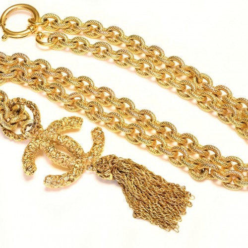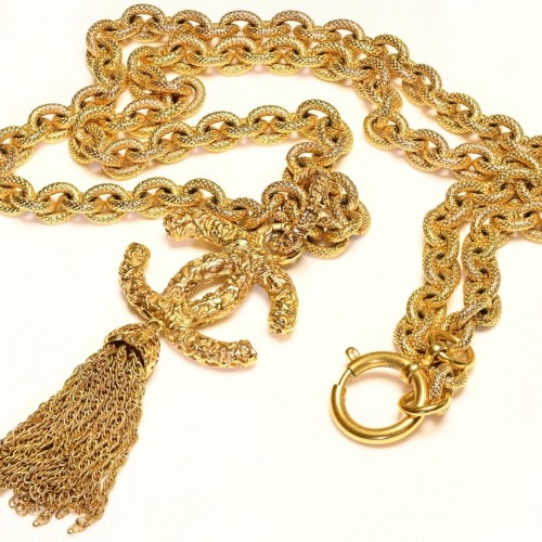 Chanel Paris Fall 1993 Lava Collection CC Tassel Chain Pendant Necklace