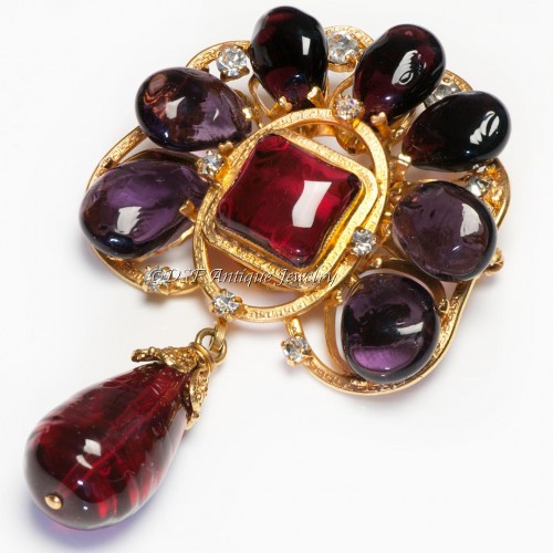 Chanel Paris Fall 1996 Maison Gripoix Purple Red Poured Glass Pendant Brooch