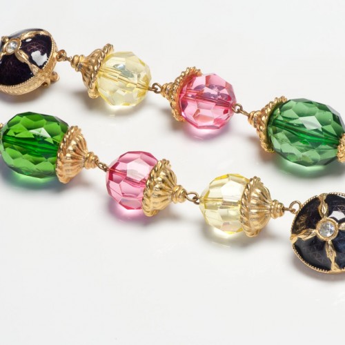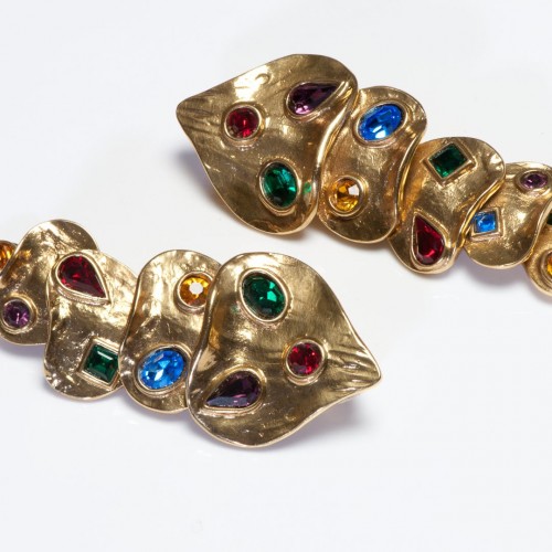 Vintage Yves Saint Laurent Paris Green Purple Pink Blue Crystal Heart Earrings