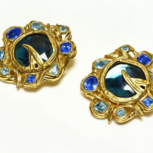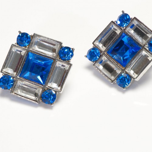 Vintage Yves Saint Laurent Paris Blue Crystal Geometric Earrings