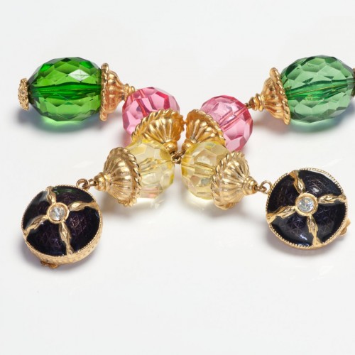 Vintage Yves Saint Laurent Paris Couture Pink Orange Drop Earrings