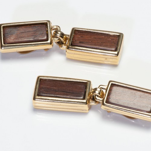 Vintage Yves Saint Laurent Long Gold Plated Brown Wood Earrings