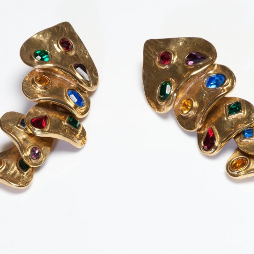 Vintage Yves Saint Laurent Paris Green Purple Pink Blue Crystal Heart Earrings